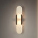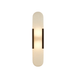 Featuring a brushed gold/metal frame paired with a frosted glass diffuser, this sconce casts a warm, inviting glow that enhances both contemporary and classic décor styles. The elongated, rounded silhouette evokes balance and serenity, making it a striking addition to living rooms, hallways, bedrooms, or elegant hospitality spaces.